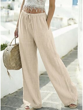 Per donna Pantaloni in cotone e lino Gamba larga Chinos Pantaloni Estivi Streetwear Casual Lunghezza intera Vita media Semplice Tasca Fascia Elastica Confortevole Micro-elastico Quotidiano All'aperto