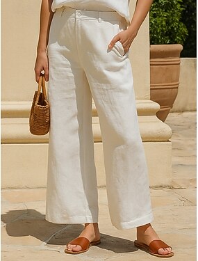 Per donna Finto cotone e lino Pantaloni Pantaloni Estivi Pantaloni da Spiaggia Vacanza Essenziale Casual Lunghezza intera Vita media Semplice Tasca Gamba larga Comodità All'aperto Inelastico