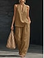 Per donna Set da due pezzi Gilet Finto cotone e lino Pantaloni a Gamba Larga Senza Maniche Girocollo Semplice Moda Streetwear Quotidiano Casuale Quotidiano Nero Blu marino Cachi Estate Vestibilit