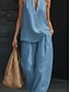 Per donna Abito maxi Finto cotone e lino Abito a trapezio Casual Quotidiano Vestibilità comoda Semplice Senza Maniche Scollo a V Blu Estate Primavera
