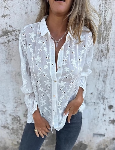 Per donna Camicia Carino Manica Lunga Colletto a Camicia Top Regolari Quotidiano Bianco Beige Estate Primavera