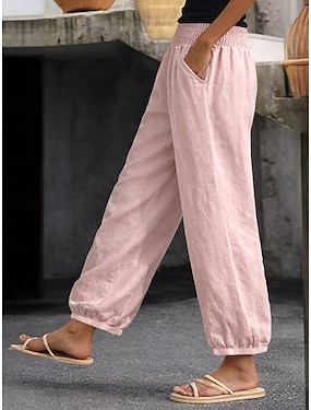 Per donna Finto cotone e lino Pantaloni Pantaloni Estivi Pantaloni Larghi Vacanza Essenziale Casual Lunghezza intera Vita Alta Semplice Coulisse Tasca Fascia Elastica Morbido Confortevole Traspirante