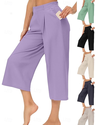 Per donna Culotte Gamba Larga Gamba larga Chinos Vacanza Streetwear Essenziale Lunghezza al polpaccio Vita media Tinta unica Tasca Fascia Elastica Comodo Comodità Inelastico Quotidiano All'aperto