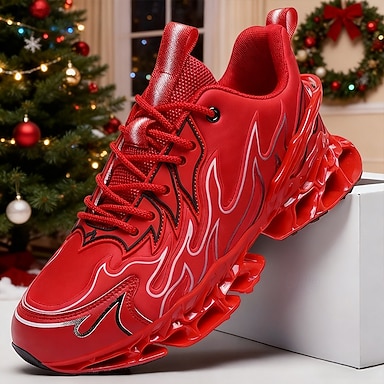 scarpe da corsa da uomo con fiamme rosse: scarpe sportive leggere e traspiranti con un design grafico audace per jogging, fitness, streetwear e stile quotidiano