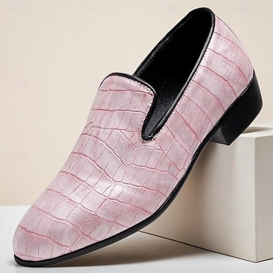 mocassini eleganti da uomo in pelle sintetica rosa con stampa coccodrillo, finitura liscia, stile moderno ed elegante, perfetti per uomini eleganti a matrimoni e feste