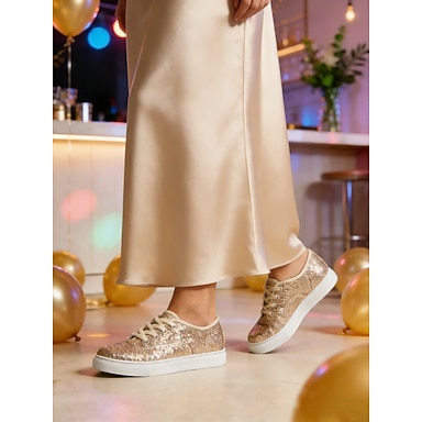 sneakers da donna con lacci e glitter dorati: scarpe casual basse e scintillanti per matrimoni, feste, viaggi e uso quotidiano