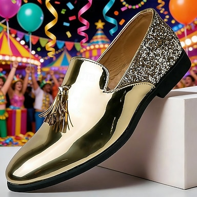 Mocassini dorati glitterati slip-on da Mardi Gras per uomo – Scarpe formali scintillanti per occasioni speciali feste e celebrazioni di carnevale