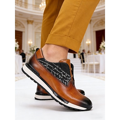 sneakers da uomo in vera pelle marrone, scarpe formali alla moda per matrimoni ed eventi speciali