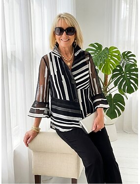 Per donna Camicia Set da due pezzi Set di Pantaloni Manica Lunga Colletto a Camicia A righe Moda Streetwear Casuale Quotidiano All'aperto Nero Estate Vestibilità regolare