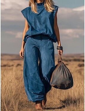 Per donna Set di Pantaloni Bolero Top Senza Maniche Collo alla coreana Semplice Patchwork Moda Streetwear Casuale Quotidiano All'aperto Blu Rosa Verde militare Primavera Vestibilità regolare
