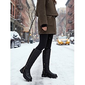 stivali alti fino al ginocchio in pelle scamosciata da donna con ampia cerniera regolabile sul polpaccio, stivali alla moda con tacco a blocco per lo streetwear urbano