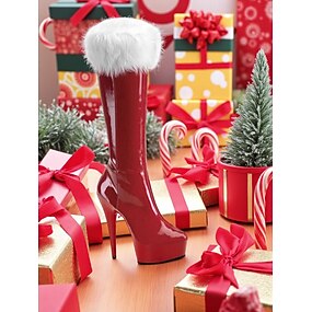 stivali natalizi da donna con tacco alto e rifiniture in pelliccia sintetica - stile festivo, perfetti per feste e celebrazioni natalizie