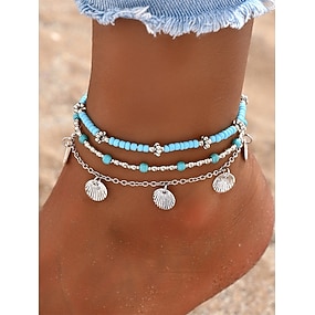Set di cavigliere in lega da donna in stile bohémien, multicolore, con ciondoli a conchiglia, ideale per l'uso quotidiano, le vacanze e i viaggi