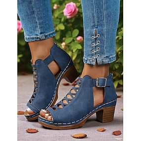 stivaletti da donna con tacco a blocco, punta aperta e cerniera posteriore – eleganti tacchi alti estivi per appuntamenti, feste in giardino ed eventi all'aperto