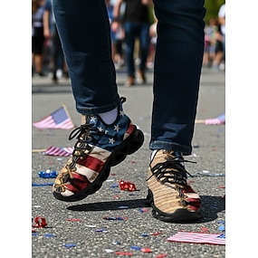 Scarpe da ginnastica da uomo con bandiera americana patriottica: scarpe da corsa leggere e traspiranti con lacci, ideali per il giorno dell'indipendenza, le parate e le passeggiate all'aperto.