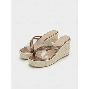 Sandali espadrillas con zeppa e cinturino trasparente da donna – ciabatte con plateau e punta aperta trasparenti, chic stile estivo da spiaggia per vacanze all'aperto, viaggi e resort