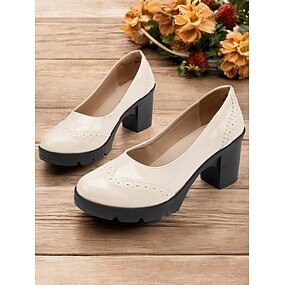 décolleté da donna in vernice con tacco spesso e plateau con dettagli brogue, scarpe eleganti in stile vintage per ufficio, feste ed eventi formali