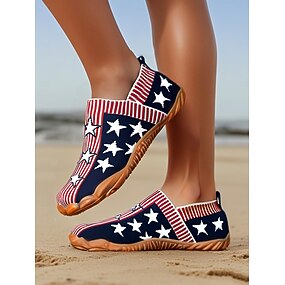 Per donna Scarpe basse Scarpe Flyknit Scarpe a piedi nudi Scarpe a calzata larga Quotidiano Giorno dell'Indipendenza Viaggio Stella Bandiera Americana Colore a Contrasto Tacco basso Punta Tonda
