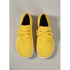 Sneakers da donna gialle leggere in maglia, vestibilità ampia: scarpe da passeggio traspiranti con lacci, ideali per viaggiare, per l'uso quotidiano e per un comfort casual.