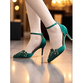 tacchi alti in raso verde con fibbia in cristallo – scarpe casual eleganti per donna, perfette per eventi diurni, feste o cocktail