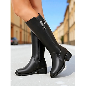 stivali alti fino al ginocchio da donna - scarpe casual chic con tacco basso, adatte per lo streetwear urbano e per gli outfit di tutti i giorni