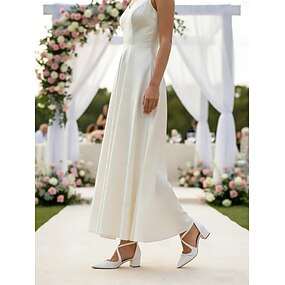 Scarpe da damigella bianche con tacco a blocco per donna – scarpe da sposa con punta a punta e tacco basso con cinturino incrociato alla caviglia, eleganti décolleté da sposa per feste