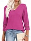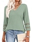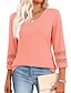 Per donna Blusa Semplice Elegante Manica 3/4 Scollo a V Top Regolari Quotidiano Ferie Uscire Patchwork Traforato Nero Bianco Verde chiaro Rosa Blu marino Primavera Autunno