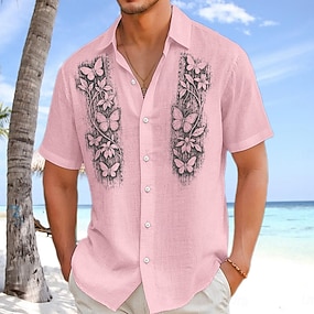 Per uomo Camicia Camicia di lino Camicia Estiva Camicia da Spiaggia Camicia con Bottoni Floreale Casuale Ferie Bianco Rosa Blu marino Azzurro cielo Maniche Corte Collo ripiegato Estate Abbigliamento