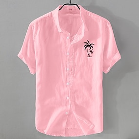 Per uomo Camicia di lino Camicia minimalista Aloha Camicia casual Camicia in cotone e lino Camicia con Bottoni Albero di Cocco Vacanza Streetwear Nero Bianco Rosa Blu marino scuro Manica Corta Bavero