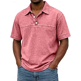 Per uomo Camicia lavata con acido Polo in Cotone Casuale Affari Colletto Polo a Coste Manica Corta Moda Essenziale Tinta unica Blocco di colori Bottoni Lavato Estate Primavera Primavera & Autunno
