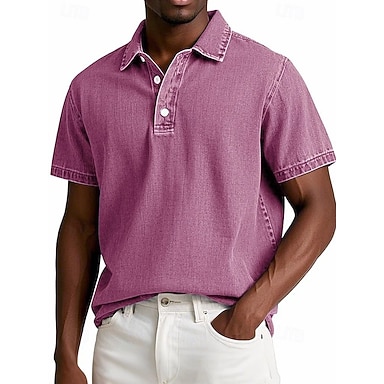 Per uomo Camicia Camicia popover Camicia Estiva Camicia casual Camicia lavata con acido Blu Rosa chiaro Nero Verde chiaro Blu marino scuro Manica Corta Semplice Colletto Polo All'aperto Lavoro