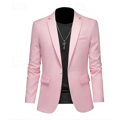 Per uomo Giacca Attività commerciale Cocktail party Ricevimento di matrimonio Di tendenza Informale Primavera & Autunno Poliestere Tinta unica Pulsante Tasche Comodo Monopetto Giacca Rosa chiaro
