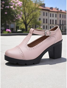 Scarpe con tacco a T rosa da donna - décolleté retrò con tacco medio, dettagli brogue e fibbia regolabile per tea party, abbigliamento quotidiano e outfit ispirati agli anni '50