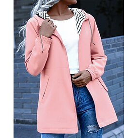Per donna Trench Giacche antipioggia impermeabili Impermeabile Antivento Cerniera Tasca Moda All'aperto Semplice Uscire Weekend Cerniera Regolare Con Cappuccio Vestibilità regolare Manica Lunga