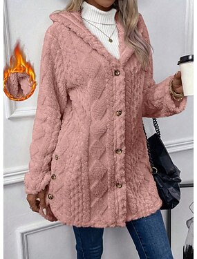 Per donna Giacca Sherpa Giacca con Cappuccio Confortevole Traspirante Tasca Bottoni Moda Casual Semplice Vacanza Streetwear Casuale Abbigliamento quotidiano Monopetto Regolare Con Cappuccio