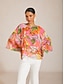 Per donna Femminile Camicia casual Casuale Corte Rosa Floreale Bottoni Manica 3/4 Elegante Bohemien Vacanza Scollo a V Estate Primavera