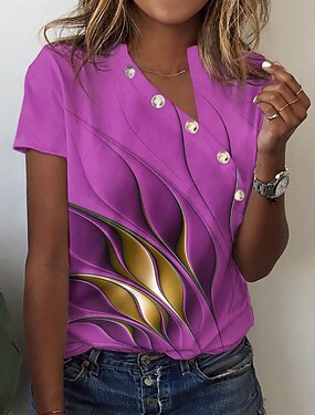 Per donna Maglietta Bottoni Stampato Grafico Essenziale Manica Corta Scollo a V Top Regolari Quotidiano Weekend Blu Rosa Verde Grigio