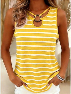 top da donna con scollo a goccia, tunica, canotta, scollo a goccia, grafica, geometrica, a righe, elegante, classico, senza maniche, asimmetrico, lungo, casual, quotidiano, giallo, estate, primavera