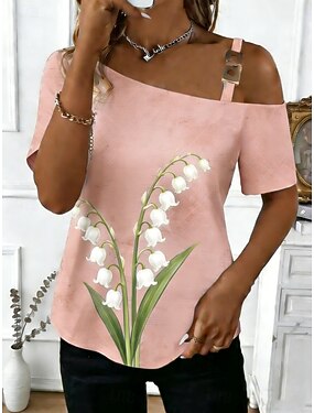 Per donna Maglietta Stampato Floreale Grafico Moda Classico Casual Manica Corta Monospalla Top Regolari Quotidiano Uscire Weekend Rosa Viola Verde Estate Primavera