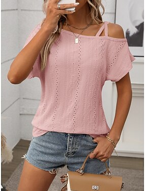 Per donna Maglietta Semplice Moda Elegante Classico Manica Corta Senza Spalle Top Regolari Quotidiano Uscire Weekend Blu Nero Bianco Rosa Albicocca Estate Primavera