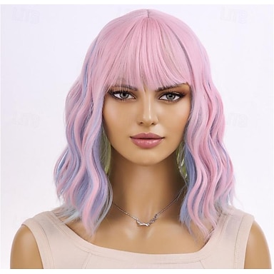 parrucca bob ondulata con frangia aria parrucche bob corte ricce naturali parrucche da donna lunghe fino alle spalle parrucche sintetiche cosplay per ragazze parrucche colorate