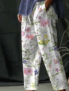 Per donna Finto cotone e lino Pantaloni Estivi Pantaloni Corti Streetwear Boho Lunghezza alla caviglia Misura del girovita medio Floreale Elastico in vita Confortevole Abbigliamento quotidiano Uscire