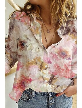 Per donna Camicia Abbottonare Blusa Finto cotone e lino Bottoni Stampato Fiore Essenziale Moderno Manica Lunga Girocollo Top Regolari Quotidiano Ferie Uscire Bianco Rosa Verde Azzurro Estate