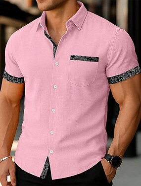 Camicia Uomo Camicia in Lino Camicia Estiva Camicia da Spiaggia Camicie Non Rimboccate Paisley Vacanza Nera Rosa Blu Arancione Maniche Corte Collo Estate Primavera Abbigliamento Color Block