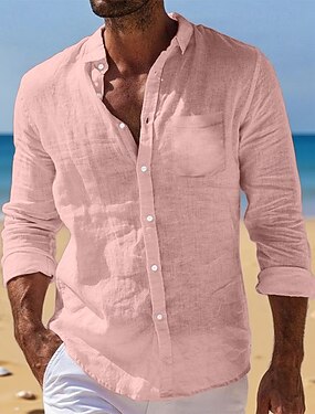 Per uomo Camicia di lino Camicia Estiva Camicia casual Semplice Vacanza Casuale Bianco Rosa Azzurro cielo Marrone Manica Lunga Colletto da cerimonia con passante Primavera & Estate Abbigliamento