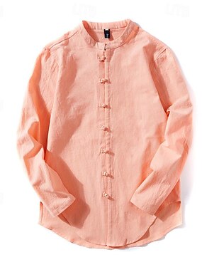 Per uomo Camicia Camicia di lino Camicia popover Camicia casual Camicia di cotone Semplice Vacanza Camicia hawaiana Nero Bianco Rosa Arancione Manica Lunga Colletto alla coreana Primavera Autunno