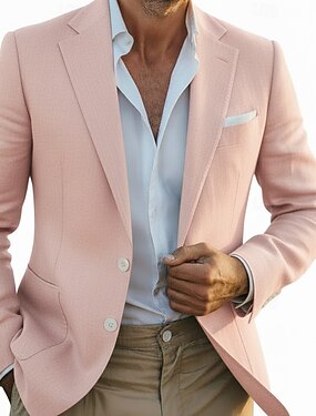 Per uomo Blazer di Lino Giacca Sportiva Colletto ad incastro Moda Casual Tinta unita Blazer in lino Rosa Azzurro Vestibilità standard Monopetto Un Bottone