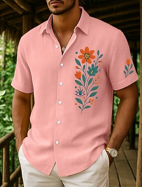 Per uomo Camicia Camicia di lino Camicia Estiva Abbigliamento da spiaggia Camicia con Bottoni Floreale Vacanza Crociera Giallo Rosa Blu marino Verde Manica Corta Colletto Estate Primavera & Estate