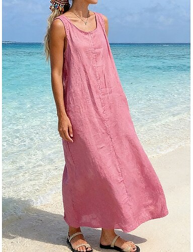 Per donna Abito Lungo Maxi Abito Finto cotone e lino Abito a Tubino Vestito Estivo Abito Sottoveste Elegante Sexy Quotidiano Vacanza Data Vestibilità regolare Semplice Senza Maniche Scollo Tondo Rosa
