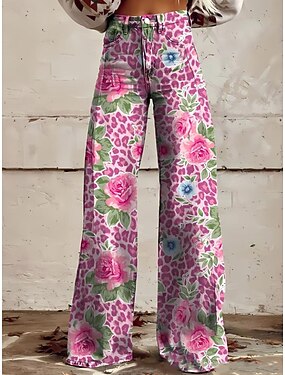 Pantaloni chinos larghi da donna pantaloni baggy moda streetwear boho lunghezza intera vita alta stampa floreale grafica astratta elastico comodo morbido confortevole micro-elastico all'aperto